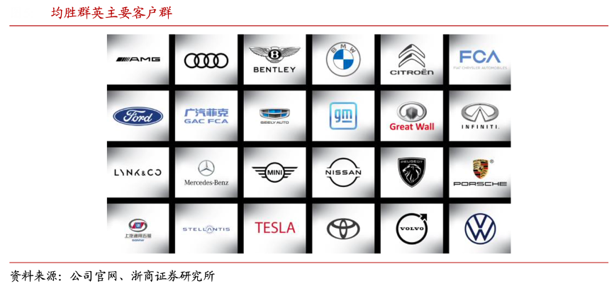 經(jīng)典案例:根據(jù)公司官網(wǎng)、浙商證券研究所等綜合資訊表明,香山股份公司擁有廣泛的客戶群,旗下均勝群英子公司客戶群覆蓋國內(nèi)外知名汽車廠商。均勝 群英與吉利汽車、上汽通用等國內(nèi)整車廠商深入合作,并拓展與奔馳、寶馬、奧迪、大眾等全球知名汽車品牌的新能源汽車方面合作規(guī)模,客戶數(shù)量穩(wěn)定增長。
