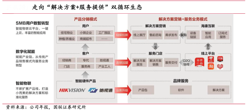 經(jīng)典案例:根據(jù)公司年報、國聯(lián)證券研究所等綜合資訊表明,??低暽罡鲁潦袌?,與全國合作伙伴共建“解決方案營銷+服務提供”的雙循環(huán)生態(tài),打造線上線下數(shù)字化門店,構(gòu)建覆蓋全國的服務網(wǎng)格, 助力中小企業(yè)數(shù)字化轉(zhuǎn)型。截至 2022 年末,公司在中國大陸擁有 32 家省級業(yè)務中心、300 多個城市分公司,渠道網(wǎng)絡覆蓋國內(nèi)絕大多數(shù)地級以上城市,渠道優(yōu)勢突出。