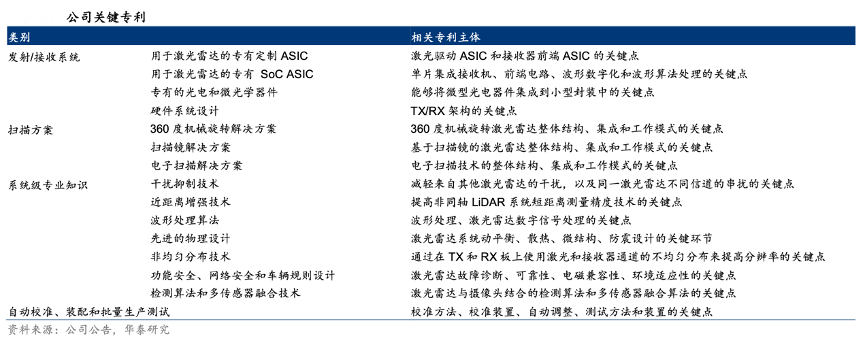 經(jīng)典案例:根據(jù)公司公告、華泰研究等綜合資訊表明,強(qiáng)大的研發(fā)和自主設(shè)計(jì)能力造就禾賽出色激光雷達(dá)和ASIC。禾賽的研發(fā)團(tuán)隊(duì)包括禾賽研究院、 ASIC 中心,以及研發(fā)中心,截至 2022 年 12 月 31 日,禾賽共有員工1,010 人, 其中研發(fā)團(tuán)隊(duì)占 52%,博士學(xué)歷 74 人。TX/RX 系統(tǒng)的關(guān)鍵知識(shí)產(chǎn)權(quán)、掃描機(jī)制、系統(tǒng)級(jí)專有技術(shù)等均為激光雷達(dá)設(shè)計(jì)和 ASIC 升級(jí)提供強(qiáng)有力支撐。