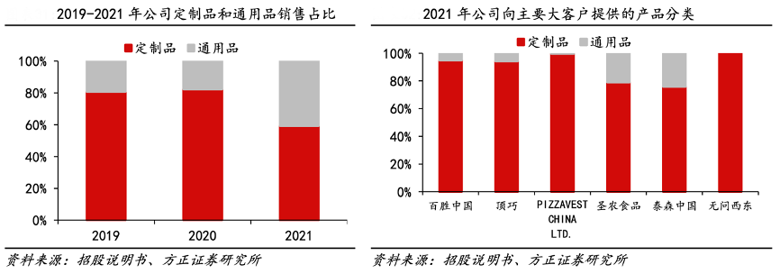 經(jīng)典案例:根據(jù)招股說(shuō)明書(shū)、方正證券研究所等綜合資訊表明,2019年和2020年,寶立食品公司收入中超過(guò)80%均為定制品,說(shuō)明公司定制化程度高,可以為大 B 客戶(hù)根據(jù)自身場(chǎng)景量身定制新品,利于提升各大連鎖餐飲品牌推新速度,公司憑借此優(yōu)勢(shì)與客戶(hù)建立了長(zhǎng)期穩(wěn)定的合作關(guān)系。