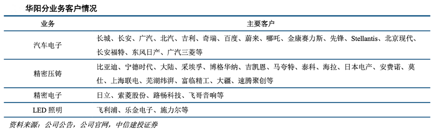 經(jīng)典案例:根據(jù)公司公告、公司官網(wǎng)、中信建投證券等綜合資訊表明,華陽公司產(chǎn)品覆蓋汽車關鍵零部件(含新能源 三電系統(tǒng)關鍵部件)、精密 3C 電子部件及工業(yè)控制部件等產(chǎn)品,作為 Tier2 向法雷奧、蒂森克虜伯、大陸等外資 Tier 1 龍頭供貨,近年來又成功進入比亞迪等主機廠供應鏈,產(chǎn)品從動力系統(tǒng)、制動系統(tǒng)、轉向系統(tǒng)等關鍵零部件延伸至新能源三電系統(tǒng)、熱管理系統(tǒng)和汽車電子零部件(HUD、激光雷達、毫米波雷達)等。