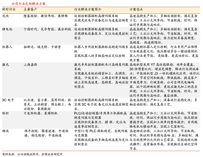 經(jīng)典案例:根據(jù)公司招股說明書、浙商證券研究所等綜合資訊表明,禾川科技發(fā)揮產(chǎn)品組合優(yōu)勢,打造多場景解決方案。其充分發(fā)揮控制、驅(qū)動(dòng)、傳感、 機(jī)電一 體化等產(chǎn)品組合優(yōu)勢,在光伏、鋰電、機(jī)器人、激光等多個(gè)行業(yè)擁有深入的個(gè)性化解決方案。