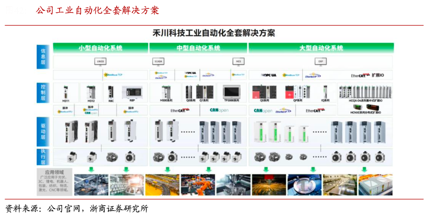 經(jīng)典案例:根據(jù)公司官網(wǎng)、浙商證券研究所等綜合資訊表明,禾川科技起步階段主要依靠 PLC 和 伺服系統(tǒng)兩大產(chǎn)品,之后相繼突破編碼器、工控芯片、智能相機等驅(qū)動層、執(zhí)行層產(chǎn)品;公司還在工控芯片的自主可控上取得突破,公司自主研發(fā)設(shè)計的驅(qū)動控制一體化 SIP 芯片集成了主控 MCU、存儲、運動控制算法和工業(yè)實時以太網(wǎng) IP,目前已實現(xiàn)對外銷售。