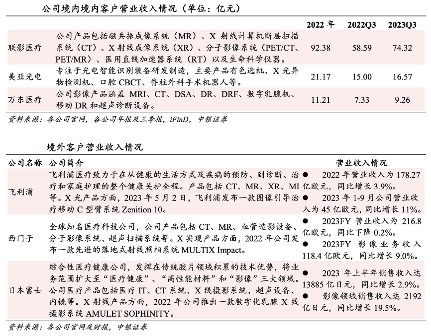 經(jīng)典案例: 根據(jù)各公司官網(wǎng)及財(cái)報(bào)、中銀證券等綜合資訊表明,奕瑞科技公司不斷實(shí)現(xiàn)國(guó)內(nèi)及海外客戶的突破:在醫(yī)療業(yè)務(wù)方面公司覆蓋多家醫(yī)療影像設(shè)備頭部企業(yè),國(guó)內(nèi)客戶包括有聯(lián)影醫(yī)療、萬(wàn)東醫(yī)療、美亞光電等,海外客戶包括柯尼卡、富士、西門子、飛利浦等。