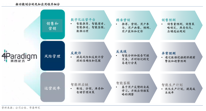 經(jīng)典案例:根據(jù)公司公告、華泰研究等綜合資訊表明,第四范式于 2023 年 3 月推出專為業(yè)務場景設計的企業(yè)級生成式 AI 產品 SageGPT。SageGPT 具有多模態(tài)交互和企業(yè)級 AI 工具,它重新定義了最終用戶員工與業(yè)務系統(tǒng)交互的方式。