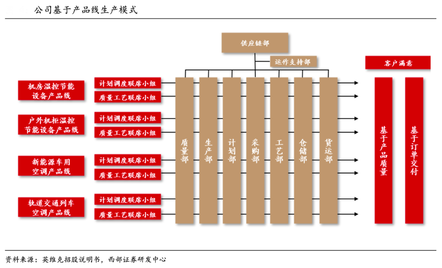 經(jīng)典案例:根據(jù)英維克招股說(shuō)明書(shū)、西部證券研發(fā)中心等綜合資訊表明,英維克扎根于溫控節(jié)能設(shè)備領(lǐng)域,利用統(tǒng)一技術(shù)和供應(yīng)鏈平臺(tái),多細(xì)分領(lǐng)域業(yè)務(wù)布局,并基于產(chǎn)品線組織生產(chǎn)。通過(guò)共享研發(fā)、采購(gòu)、服務(wù)等環(huán)節(jié),提升產(chǎn)品研發(fā)速度,實(shí)現(xiàn)規(guī)?;少?gòu),以此“快速推出優(yōu)質(zhì)產(chǎn)品”,力爭(zhēng)每個(gè)細(xì)分市場(chǎng)成為龍頭或主流。