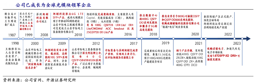 經(jīng)典案例:根據(jù)公司官網(wǎng)、開源證券研究所等綜合資訊表明,中際旭創(chuàng)是全球光模塊龍頭企業(yè),集高端光通信收發(fā)模塊的研發(fā)、設(shè)計、封裝、測試和銷售于一體。自2008年公司成立以來,公司不斷加強(qiáng)光電產(chǎn)業(yè)全鏈條投資布局,并保持在數(shù)通光模塊細(xì)分市場的領(lǐng)先優(yōu)勢和份額。在 Lightcounting 發(fā)布的 2022 年度光模塊廠商排名中,中際旭創(chuàng)和 Coherent 并列全球第一。
