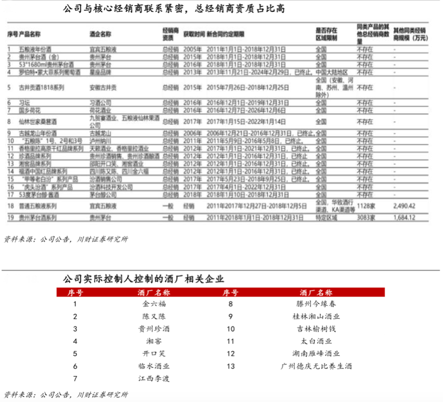 經(jīng)典案例:根據(jù)公司公告、川財證券研究所等綜合資訊表明,華致酒行的公司實際控制人不但掌控了大量的白酒終端,而且與各大白酒品牌核心經(jīng)銷商有大量的緊密聯(lián)系,同時入股了金六福、陳又陳、貴州珍酒等大量酒廠,一條白酒產(chǎn)業(yè)鏈生產(chǎn)、供應(yīng)、流通、銷售等“自主白酒品牌產(chǎn)業(yè)鏈”呼之欲出。