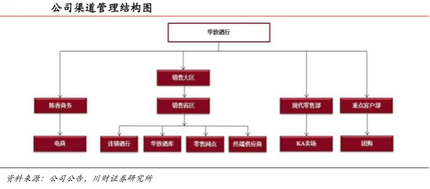 經(jīng)典案例:華致酒行在渠道管理結(jié)構(gòu)方面,其將全國市場劃分為四個銷售大區(qū),并在各個銷售大區(qū)下分設(shè)省區(qū)以進(jìn)行管理、加強渠道開發(fā),同時公司在銷售大區(qū)外獨立設(shè)立重點客戶部、現(xiàn)代零售部、子公司陳香商務(wù)負(fù)責(zé)管理及拓展公司的團購、KA、電商渠道。