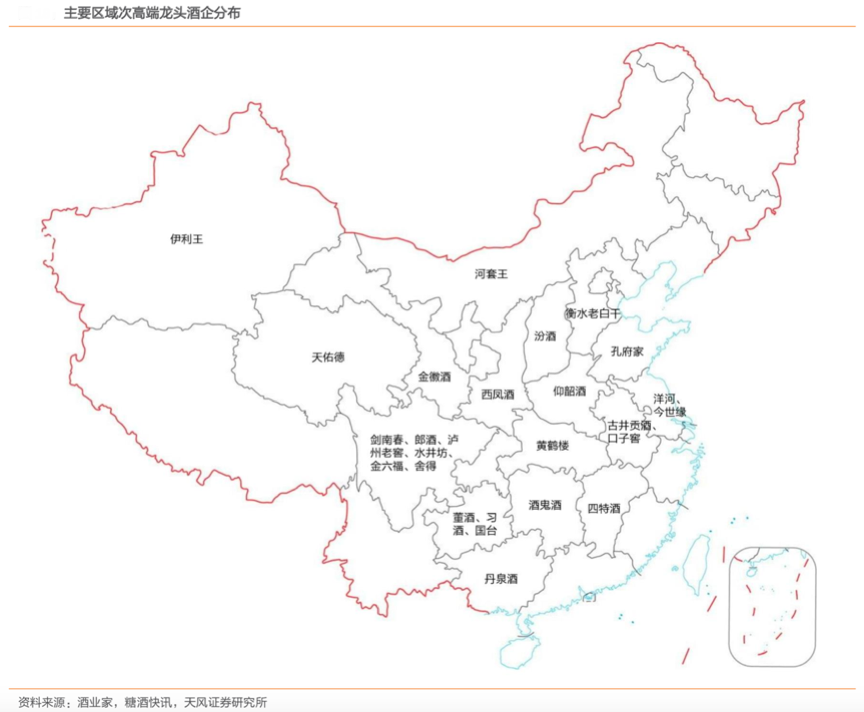從酒業(yè)家、糖酒快訊、天風(fēng)證券研究所等綜合資訊顯示,各次高端白酒品牌依托各自的產(chǎn)地、產(chǎn)能投放等紛紛建立了自己的“戰(zhàn)略根據(jù)地”,有依托名酒產(chǎn)地的、以劍南春郞酒等品牌為代表的“產(chǎn)地型白酒次高端市場(chǎng)”,有強(qiáng)化本地化白酒消費(fèi)的、以黃鶴樓汾酒等品牌為代表的“區(qū)域性次高端市場(chǎng)”,更有多品牌共處、拉踞性激烈競(jìng)爭(zhēng)的、以洋河今世緣等品牌為代表的“強(qiáng)競(jìng)爭(zhēng)性高端市場(chǎng)”。