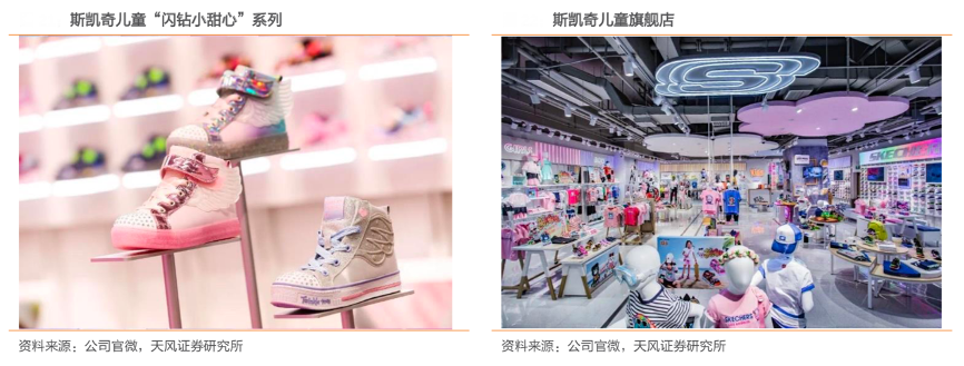 經(jīng)典案例:根據(jù)公司官微、天風(fēng)證券研究所等綜合資訊表明,斯凱奇打造了覆蓋 1-12 歲全年齡段的兒童產(chǎn)品線,明星產(chǎn)品“王牌閃燈鞋&閃鉆小甜心” 外觀閃亮搶眼熱度高,“爆笑小怪獸”系列為中小童獨立打造的全新專屬IP 形象。