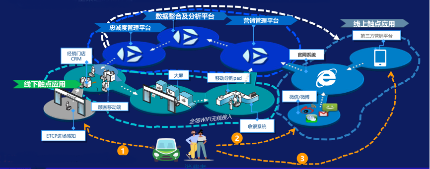 經(jīng)典案例:根據(jù)《20210518-國雙科技-汽車行業(yè)數(shù)字化轉型報告》等綜合資訊表明,數(shù)字時代,車企在快速地從傳統(tǒng)以網(wǎng)點為中心的銷售,轉向以消費者為中心的業(yè)務模式。隨著數(shù)字商城、智能門店、全渠道營銷等渠道的快速發(fā)展,當前的汽車零售正在通過各種數(shù)字化技術打通數(shù)據(jù)壁壘,在重構線上線下零售場景的同時,優(yōu)化消費者全渠道購物體驗,通過將消費者數(shù)據(jù)轉化為效率,成功實現(xiàn)汽車零售。