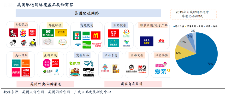 經(jīng)典案例:根據(jù)美團(tuán)點(diǎn)評(píng)官網(wǎng)、美團(tuán)閃購(gòu)官網(wǎng)、廣發(fā)證券發(fā)展研究中心等綜合資訊表明,2018年7月,美團(tuán)正式推出非餐配送業(yè)務(wù)“美團(tuán)閃購(gòu)”,該業(yè)務(wù)聯(lián)合超市、生鮮、果蔬、鮮花等多領(lǐng)域商家,提供全品類商品的配送到家業(yè)務(wù),力求在30分鐘配送上門并實(shí)現(xiàn)24小時(shí)無(wú)間斷配送。美團(tuán)閃購(gòu)以美團(tuán)外賣APP和美團(tuán)APP為主要入口。根據(jù)美團(tuán)優(yōu)選官網(wǎng)披露,美團(tuán)閃購(gòu)已經(jīng)覆蓋全國(guó)2500個(gè)市縣,擁有活躍騎手60萬(wàn),采用統(tǒng)一配送系統(tǒng)、智能算法結(jié)合客戶情況進(jìn)行最短時(shí)間的派送。