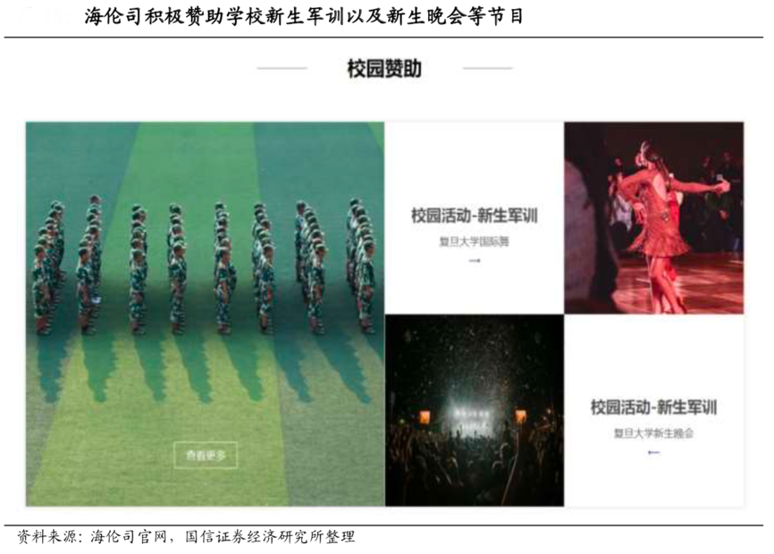 經(jīng)典案例:根據(jù)海倫司官網(wǎng)、國(guó)信證券經(jīng)濟(jì)研究所等綜合資訊表明,截至2021年5月,海倫司已贊助超過(guò)150所高校的大型活動(dòng)、累計(jì)贊助超200萬(wàn)元;贊助形式包括新生手冊(cè)、百團(tuán)招新、迎新晚會(huì),還會(huì)為學(xué)生提供免費(fèi)的酒水、小吃、聚會(huì)場(chǎng)地,在新入學(xué)新生中 迅速建立起品牌認(rèn)知。同時(shí),門店會(huì)定期推出營(yíng)銷優(yōu)惠活動(dòng),不斷提升客戶黏性及忠誠(chéng)度。在學(xué)校培養(yǎng)起一批忠實(shí)粉絲后,通過(guò)學(xué)生間口碑傳播效應(yīng)(無(wú)或低成本+ 高頻),將品牌在學(xué)生間迅速傳播開來(lái)。