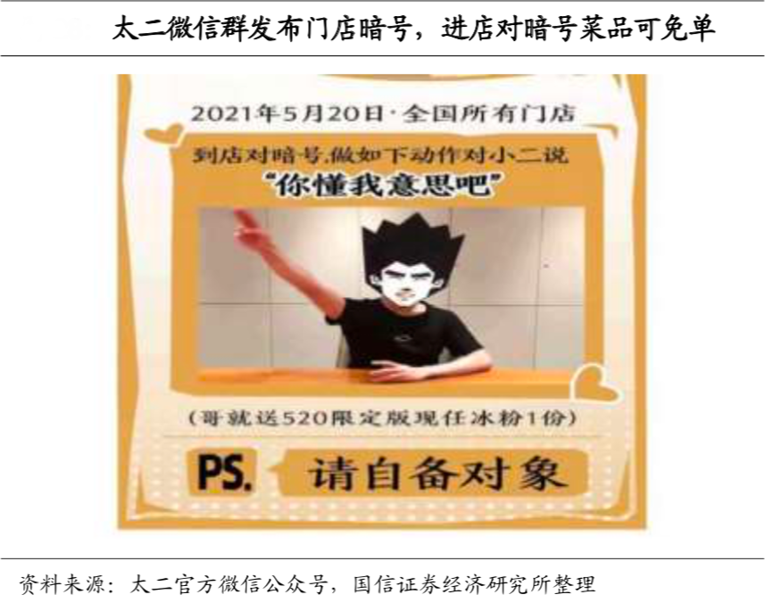經(jīng)典案例:根據(jù)太二官方微信公眾號(hào)、國(guó)信證券經(jīng)濟(jì)研究所等綜合資訊表明,太二酸菜魚與海倫司門店裝修風(fēng)格均較有特色,太二酸菜魚門店色調(diào)以黑白為主,墻面均為奇葩店規(guī)、品牌口號(hào),處處強(qiáng)化自身品牌“二”的調(diào)性。同時(shí),二者均注重私域流量的獲取,太二酸菜魚每家門店同樣運(yùn)營(yíng)粉絲微信群,并且定期與粉絲互動(dòng),如會(huì)在微信群發(fā)布門店暗號(hào),進(jìn)店對(duì)暗號(hào)即可使特定菜品免單。