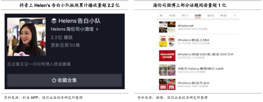 經(jīng)典案例:根據(jù)抖音APP、微博、國(guó)信證券經(jīng)濟(jì)研究所等綜合資訊表明,海倫司公司營(yíng)銷團(tuán)隊(duì)話題制造能力突出,抖音上海倫司開辟了“告白小隊(duì)系列”和“聚會(huì)游戲指南”兩個(gè)板塊,以最流行的“情感小短劇”方式來(lái)凸顯海倫司的社交屬性。 2020 年 12 月,“海倫司可樂(lè)桶”挑戰(zhàn)刷屏抖音,累計(jì)播放量超過(guò)了 10 億次;微博 端,關(guān)于Helen’s 部分話題閱讀量超過(guò) 1 億次,其他話題閱讀數(shù)則在千萬(wàn)量級(jí)。