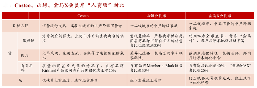 經(jīng)典案例:根據(jù)招商證券等綜合資訊表明,Costco注重線下經(jīng)營,大方試吃,線下消費體驗良好;山姆逐步發(fā)力線上營銷;盒馬X會員店服務(wù)人員較多,消費者體驗感更強,同步發(fā)展線上銷售一體化運營,提高商品運營效率。