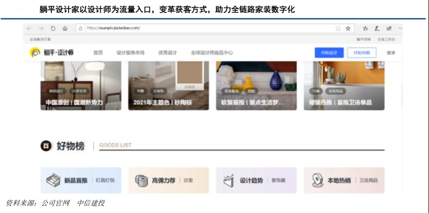 經(jīng)典案例:根據(jù)公司官網(wǎng)、中信建投等綜合資訊表明,作為居然之家與阿里巴 巴共同投資打造的家裝家居數(shù)字化設(shè)計平臺,躺平設(shè)計家以 3D 化設(shè)計工具的研發(fā)為核心,為家居設(shè)計師和家居企業(yè)提供免費專業(yè)工具和渲染服務(wù),同時依托阿里巴巴電商生態(tài),幫助設(shè)計師和企業(yè)打通設(shè)計與商品全鏈路,為消費者提供“所見即所得”的設(shè)計方案,推動家居設(shè)計全流程數(shù)字化。目前,累計全球注冊設(shè)計師達到 1000 萬人,真實商品模型數(shù)量達到 100 萬件,全國戶型圖庫達到 280 萬。