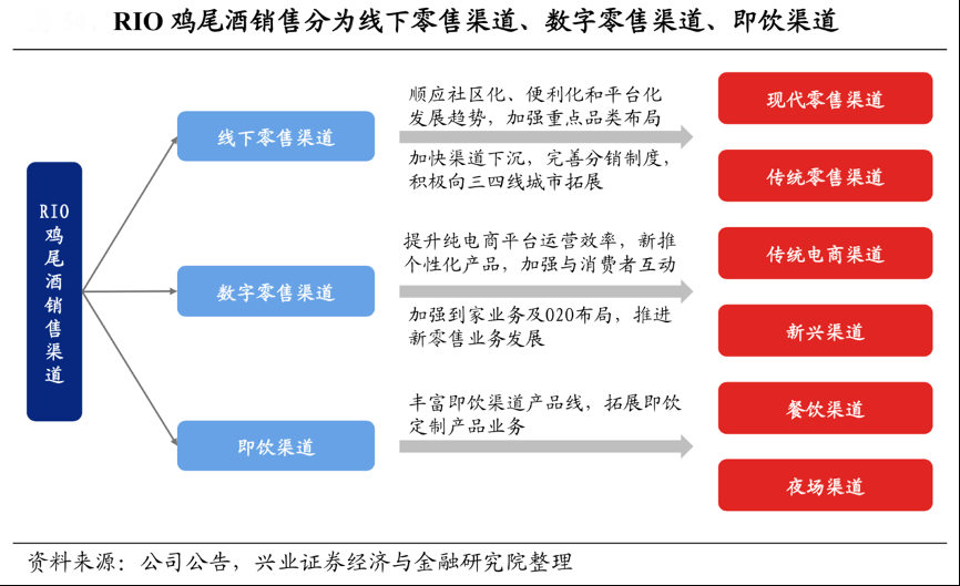 經(jīng)典案例:根據(jù)公司公告、興業(yè)證券經(jīng)濟(jì)與金融研究院等綜合資訊表明,RIO分渠道來看,線下零售渠道方面,現(xiàn)代渠道順應(yīng)社區(qū)化、便利化和平臺化發(fā)展趨勢,加強(qiáng)重點(diǎn)品類布局;傳統(tǒng)渠道加快渠道下沉、完善分銷制度,積極向三四線城市拓展。數(shù)字零售渠道方面,其傳統(tǒng)電商渠道提升純電商平臺運(yùn)營效率,新興渠道則加強(qiáng)到家業(yè)務(wù)及 O2O 布局,推進(jìn)新零售業(yè)務(wù)發(fā)展。線下零售渠道方面,豐富即飲渠道產(chǎn)品線,拓展即飲定制產(chǎn)品業(yè)務(wù)。