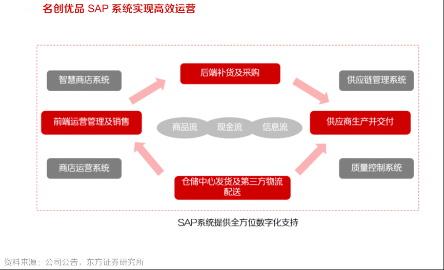 經(jīng)典案例:根據(jù)公司公告、東方證券研究所等綜合資訊表明,名創(chuàng)優(yōu)品的標準門店面積在150-300m²之間,且外倉較小,單店平均庫存維持在 2 天左右,因此高度依賴供應鏈配送體系。通過集成 IT 信息系統(tǒng)、倉儲物流系統(tǒng)及內(nèi)部管理系統(tǒng),其大規(guī)模整合供應鏈,使其產(chǎn)品可以實現(xiàn)國內(nèi) 21 天全周轉(zhuǎn)。2020 財年,名創(chuàng)優(yōu)品公司物流費用占收入比重不到 2%。