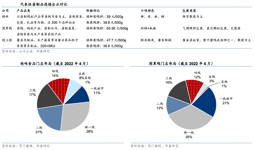 經(jīng)典案例:根據(jù)公司公告、窄門餐眼、華泰研究等綜合資訊表明,絕味食品通過供應(yīng)鏈+性價(jià)比的優(yōu)勢(shì)閉環(huán)構(gòu)建產(chǎn)品競(jìng)爭(zhēng)力,從定價(jià)上看,絕味 500g 鴨脖散裝/鎖鮮裝定價(jià)分別為 38.8/59.0 元,均低于周黑鴨鎖鮮裝鴨脖的65.6 元,略 高于煌上煌,產(chǎn)品定價(jià)端具備一定優(yōu)勢(shì)。