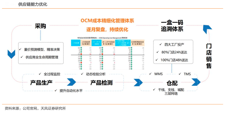 經(jīng)典案例:根據(jù)公司官網(wǎng)、天風(fēng)證券研究所等綜合資訊表明,周黑鴨公司引入 OCM 成本控制精細(xì)管理體系,進(jìn)一步優(yōu)化噸均生產(chǎn)成本,有效提高毛利率。公司以地理區(qū)劃整體布局五大生產(chǎn)中心,目前已設(shè)有四個(gè)生產(chǎn)工廠,預(yù)計(jì)華西工廠在 2022 年投入運(yùn)營(yíng),產(chǎn)能整體提升,生產(chǎn)中心間可以靈活調(diào)配產(chǎn)能,應(yīng)對(duì)區(qū)域城市風(fēng)險(xiǎn)。