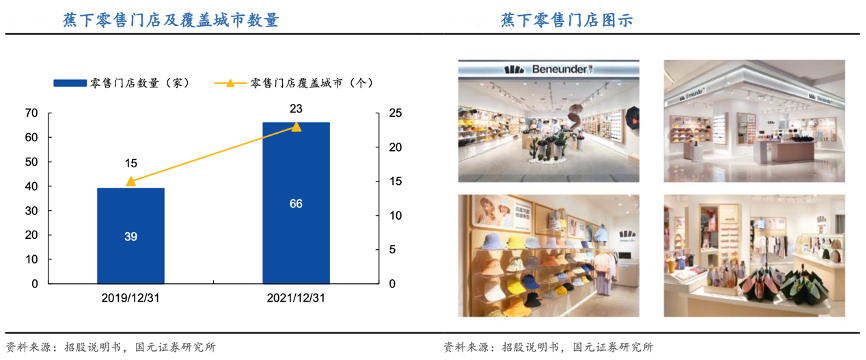 經(jīng)典案例:根據(jù)招股說明書、國元證券研究所等綜合資訊表明,零售端,蕉下公司持續(xù)拓展零售網(wǎng)絡(luò)以提供現(xiàn)場產(chǎn)品體驗(yàn)和一站式購物體驗(yàn),現(xiàn)已與國內(nèi)多個(gè)知名的連鎖商場、便利店、百貨商店合作,線下零售門店從 2019 年的 39 家增至 2021 年的 66 家(35 家為直營,31 家為 合作門店),主要分布于深圳、廣州、杭州、上海、成都、重慶等經(jīng)濟(jì)較為發(fā)達(dá)的城市。線下門店通過提供直觀的購物體驗(yàn)來強(qiáng)化品牌形象從而反哺線上。