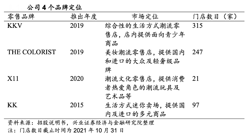 經(jīng)典案例:根據(jù)招股說明書、興業(yè)證券經(jīng)濟與金融研究院等綜合資訊表明,KK集團公司以“四個零售品牌”向消費者提供橫跨 18 個主要品類中超過 20,000 個 SKU 的各種潮流產(chǎn)品,涵蓋美妝、潮玩、食品及飲品、家居品、文具等所有主要核心生活用品類別,實現(xiàn)廣大的消費者觸及。