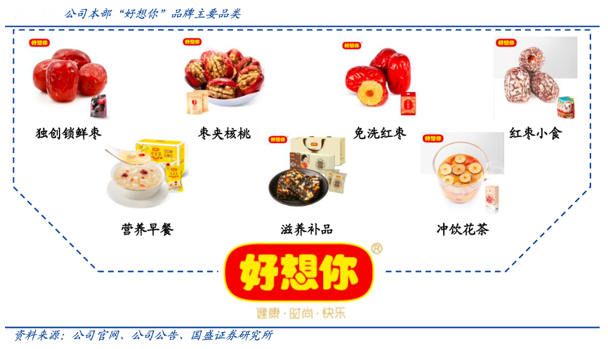 經(jīng)典案例:根據(jù)公司官網(wǎng)、公司公告、國盛證券研究所等綜合資訊表明,好想你公司本部擁有豐富的棗類產(chǎn)品經(jīng)營經(jīng)驗,已經(jīng)形成以鎖鮮棗、棗夾核桃、免洗紅棗以及紅棗小食為主的多品類產(chǎn)品矩陣,2018年公司紅棗類產(chǎn)品營收達(dá)到 8.68 億元。目前其紅棗類產(chǎn)品主力單品以清菲菲、甜小香、紅小脆、28 度鎖鮮棗為主。