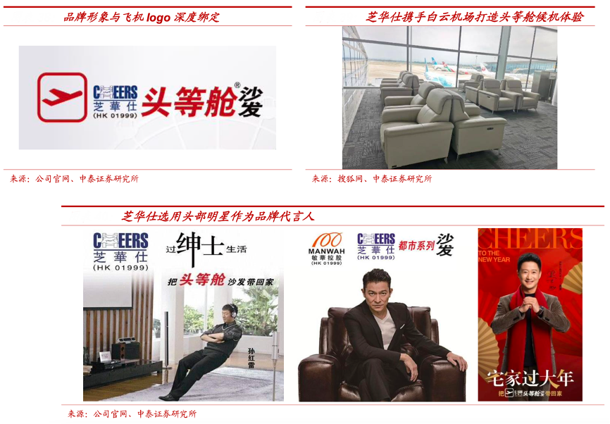 經(jīng)典案例:根據(jù)公司官網(wǎng)、搜狐網(wǎng)、中泰證券研究所等綜合資訊表明,敏華公司深度綁定“飛機頭等艙”進(jìn)行品牌概念營銷,提出“把頭等 艙帶回家”的口號,并通過類似飛機頭等艙的展示環(huán)境來進(jìn)行產(chǎn)品展示體驗;在品牌 logo 上采用標(biāo)志性的“飛機”圖案和“頭等艙”文字,并在機場、高鐵等高端商務(wù)場所開展?fàn)I銷活動,如與白云機場合作打造頭等艙候機廳,布局機場安檢框廣告等,形成商務(wù)、高端的品牌形象。