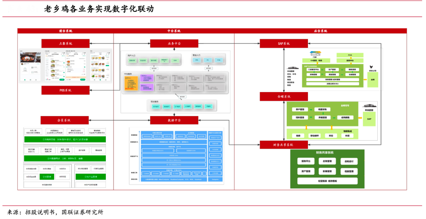經典案例:根據招股說明書 、國聯(lián)證券研究所等綜合資訊表明,鄉(xiāng)村基、老鄉(xiāng)雞通過實施 SAP 系統(tǒng),將門店端需求傳導至加工生產端,實現(xiàn)供應鏈系統(tǒng)協(xié)作;老鄉(xiāng)雞還通過實施金蝶系統(tǒng),將中央廚房需求傳導至養(yǎng)殖端,實現(xiàn)養(yǎng)殖公司標準化、精細化養(yǎng)殖。