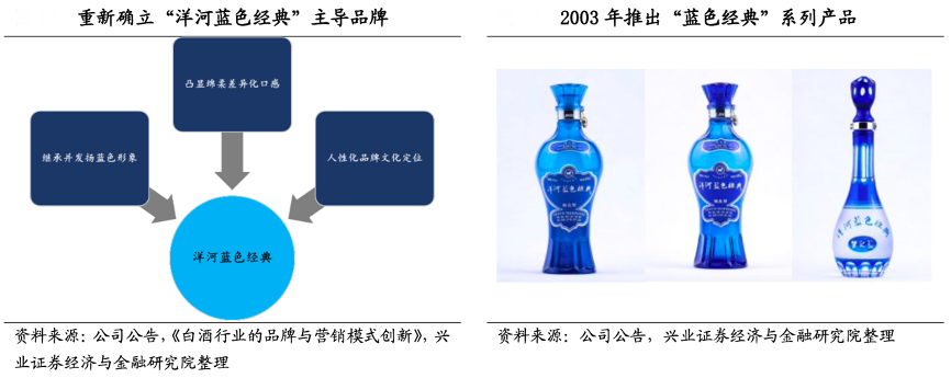 經(jīng)典案例:根據(jù)公司公告、《白酒行業(yè)的品牌與營銷模式創(chuàng)新》、興業(yè)證券經(jīng)濟(jì)與金融研究院等綜合資訊表明,“藍(lán)色”是洋河誕生以來獨(dú)具魅力的形象色,1915 年獲得巴拿馬國際金獎(jiǎng)的就是洋河主導(dǎo)產(chǎn)品藍(lán)瓶洋河,其將“藍(lán)色”作為洋河獨(dú)占色在名稱中直接體現(xiàn),既傳統(tǒng)又現(xiàn)代、既時(shí)尚又經(jīng)典。