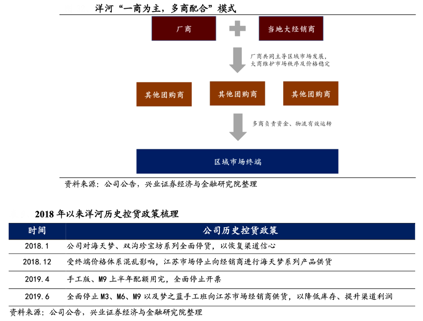 經(jīng)典案例:根據(jù)公司公告、興業(yè)證券經(jīng)濟(jì)與金融研究院等綜合資訊表明,洋河在渠道模式上,針對(duì)過去多商并存但管控不利的局面,其構(gòu)建“一商為主、多商為輔”的新型廠商關(guān)系,充分調(diào)動(dòng)大商積極性。