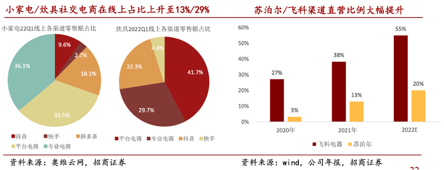 經(jīng)典案例:根據(jù)奧維云網(wǎng)、wind、公司年報(bào)、招商證券等綜合資訊表明,社交電商放量:2022Q1以抖音、快手為代表的社交電商渠道占小家電銷售額比例上升至13%,占炊具品類線上銷售額比例上升至29%。