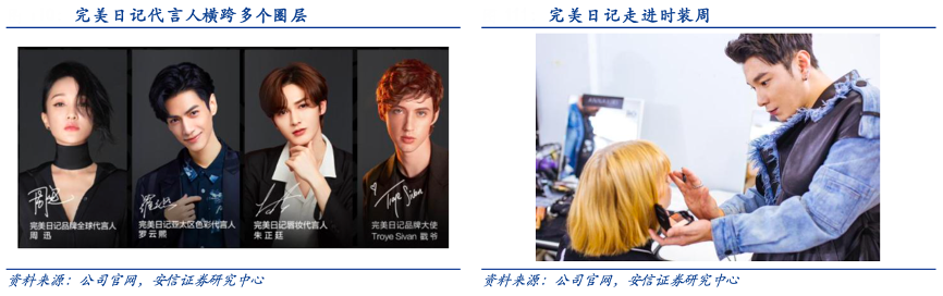 經(jīng)典案例:根據(jù)公司官網(wǎng)、安信證券研究中心等綜合資訊表明,在品牌代言人的選擇上,完美日記選擇周迅和戳爺作為全系列的全球代言人、品牌大使,推動(dòng)品牌調(diào)性和知名度的提升;選擇羅云熙、朱正廷、賴冠霖等擁有眾多年輕女性粉絲的流量明星分別代言色彩、唇妝、底妝產(chǎn)品線。為擴(kuò)大時(shí)尚影響力,其與米蘭時(shí)裝周、巴黎時(shí)裝周、上海時(shí)裝周等建立合作,通過(guò)海外博主的分享在海外時(shí)尚圈嶄露頭角。