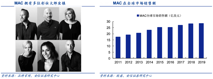 經(jīng)典案例:根據(jù)國家藥品監(jiān)督管理局、安信證券研究中心等綜合資訊表明,MAC品牌創(chuàng)立之初,其目標(biāo)人群是化妝師、模特、攝影師、造型師,隨著給雜志贊助的大獲成功,MAC的銷售遍布 120 多個國家,累計(jì)推出超過7000 個 sku,全球范圍內(nèi)平均每秒鐘售出一支口紅,每三秒售出一盤眼影,長期穩(wěn)居全球彩妝市場市占率第三的位置。