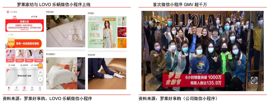 經(jīng)典案例:根據(jù)羅萊好享購、LOVO樂蝸微信小程序、羅萊好享購(公司微信小程序)、中信證券研究部等綜合資訊表明,隨著新零售模式興起,線下門店受到小程序?qū)Я?、門店直播等多項推動,羅萊公司直營門店店均收入由 2019 年的 127 萬元增長至 2021 年的 142 萬元。目前,公司已實現(xiàn)線上線下會員權(quán)益與數(shù)據(jù)互通,通過數(shù)字化分析管理維護私域流量,預計全渠道融合疊加售后保障優(yōu)勢將進一步增強客戶黏性,提升店效。