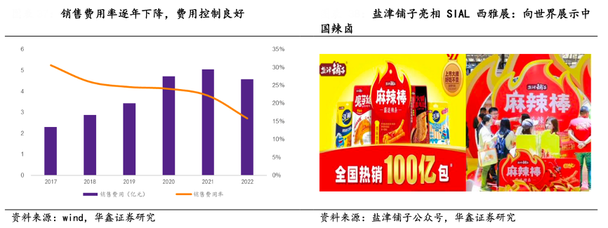 經(jīng)典案例:根據(jù)wind、鹽津鋪子、華鑫證券研究等綜合資訊表明,鹽津鋪子公司將線上電商作為品牌推廣的重要渠道,自 2020 年開始,線上電商聚焦 “大單品戰(zhàn)略”,線上線下協(xié)同,共同復(fù)利大單品,在各個細(xì)分品類形成領(lǐng)導(dǎo)品牌心智。近期,公司亮相 SIAL 西雅展展示辣味賽道的鹽津鋪子的品牌力和購買力。