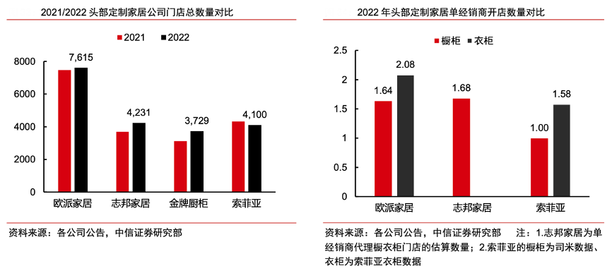 經(jīng)典案例:根據(jù)各公司公告、中信證券研究部等綜合資訊表明,志邦家居公司店態(tài)融合的方向包括:1)櫥衣融合:新開設(shè)展廳以融合大店為主,陳列廚房、 衛(wèi)生間、陽臺(tái)、衣柜、軟體、木門和墻板等產(chǎn)品,公司 2022-2023 年計(jì)劃每年開設(shè)櫥衣融合店200家。2)衣柜與軟體家具配套銷售:2022年公司衣柜內(nèi)配套品收入占比約 10%(vs 歐派20%),提升空間仍較大,公司將衣柜與軟體家具配套銷售,提升衣柜配套品收入。