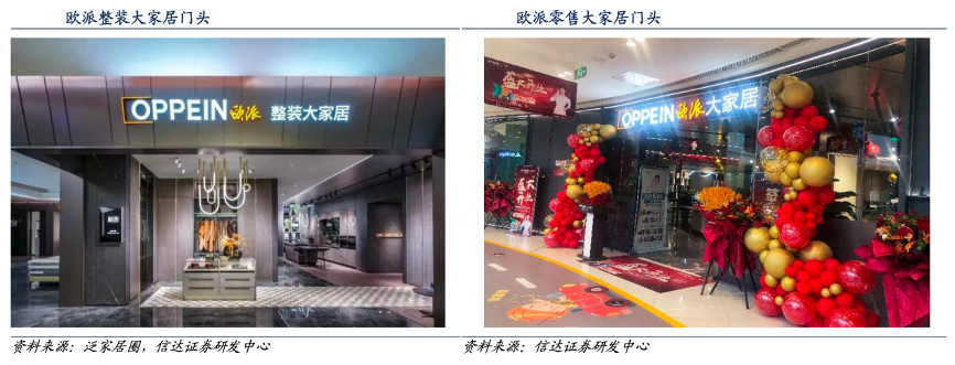 經(jīng)典案例:根據(jù)信達證券研發(fā)中心等綜合資訊表明,歐派家居公司于 2016 年便明確了一站式服務(wù)、一攬子搞掂的大家居發(fā)展戰(zhàn)略,早期推出了以哈爾濱大家居為代表的萬平大店試點。2022年歐派大家居體系搭建基本成型,分為北坡(整裝大家居)和南坡(零售大家居)。北坡即整裝大家居,以裝企為流量入口,包括歐派整裝、鉑尼思整裝兩個子品牌;南坡即零售大家居,以零售代理商為流量入口。