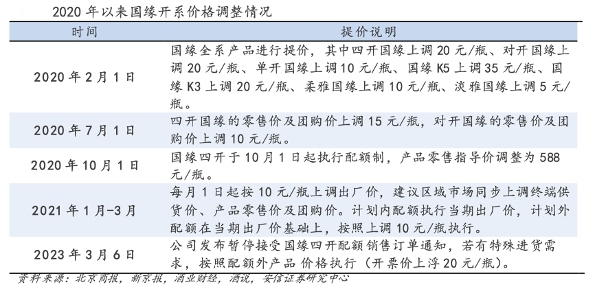 經(jīng)典案例:根據(jù)北京商報(bào)、新京報(bào)、酒業(yè)財(cái)經(jīng)、酒說、安信證券研究中心等綜合資訊表明,今世緣2020 年以來多次調(diào)整開系價(jià)格體系,當(dāng)前四開、對開仍處于迅速放量階 段。2022 年三季度,今世緣加大四開、對開系列品牌方面投入,在中秋、國慶雙節(jié)期間策劃了“家國團(tuán)圓 ,共品國緣 ”主題營銷活動,品牌力增強(qiáng);針對煙酒店與消費(fèi)者加大反向紅包獎勵,終端推力提升。