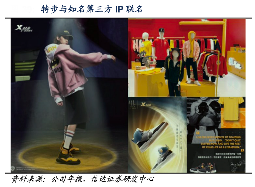 經(jīng)典案例:根據(jù)公司年報(bào)、信達(dá)證券研發(fā)中心等綜合資訊表明,特步公司注重娛樂營銷推廣,采用聯(lián)名方式打通和拓寬受眾群體。2020年公司與中國內(nèi)地最賣座的動(dòng)畫電影之一《姜子牙:一戰(zhàn)封神》合作,以電影角色神話人物為主要設(shè)計(jì)靈感,推出跨界系列產(chǎn)品,將中國傳統(tǒng)文化融入現(xiàn)代時(shí)尚運(yùn)動(dòng)服裝中,在各類社交媒體平臺(tái)上不斷創(chuàng)造出熱門話題,深受年輕人喜愛。