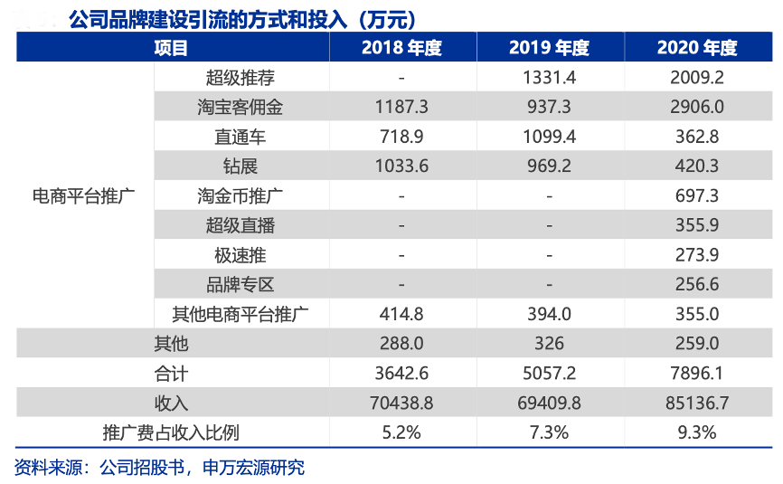 經(jīng)典案例:根據(jù)公司招股書、申萬宏源研究等綜合資訊表明,戎美公司積極跟進淘寶各類營銷活動,參與直通車、超 級推薦、鉆展等活動均取得良好效果,新增淘金幣、超級直播、極速推和品牌專區(qū)等活動。2018-2020年,公司超級推薦及淘寶客傭金呈增長之勢。