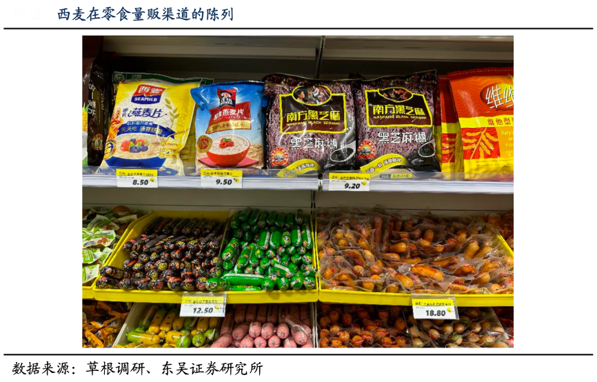經(jīng)典案例:根據(jù)草根調(diào)研、東吳證券研究所等綜合資訊表明,西麥?zhǔn)称贩e極布局零食量販渠道,與國內(nèi)各量販品牌均展開合作,2023年公司在線下零食渠道同比增長超過180%,零食量販渠道的快速發(fā)展驅(qū)動公司線下業(yè)務(wù)新增量。