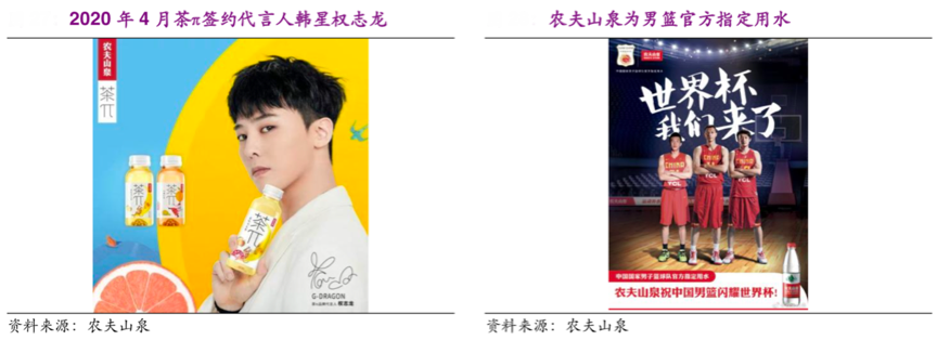 經(jīng)典案例:根據(jù)農(nóng)夫山泉招股說(shuō)明書等綜合資訊表明,農(nóng)夫山泉通過(guò)明星代言、綜藝節(jié)目植入、體育營(yíng)銷、合作推廣等多種方式,不斷保持著和年輕消費(fèi)者的溝通。2016 年公司推出的茶飲料 「茶π」由亞洲知名樂(lè)團(tuán)Bigbang代言,品牌迅速獲得了年輕消費(fèi)者的青睞。
