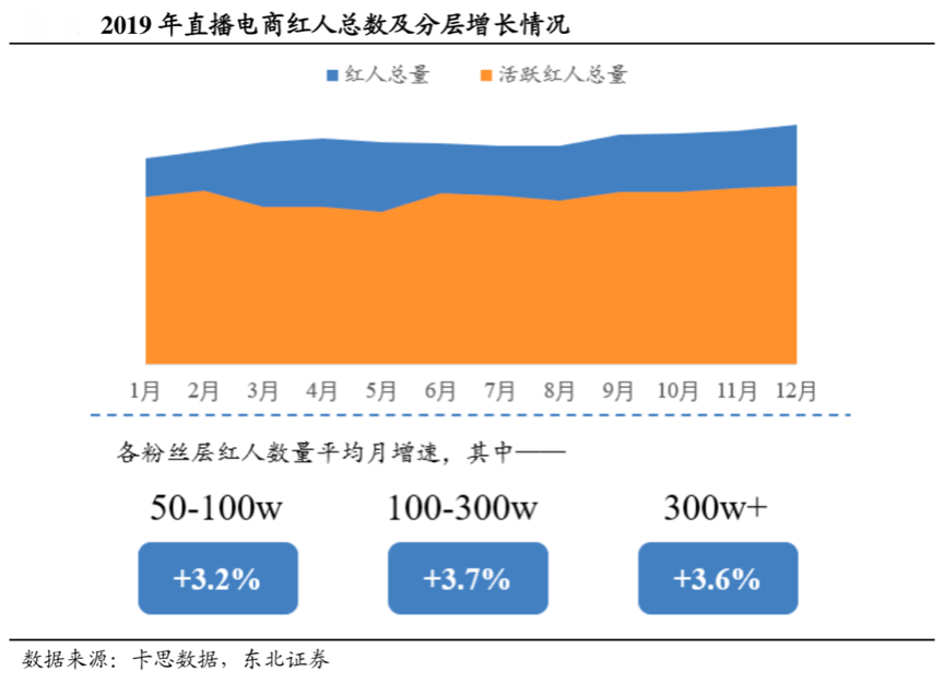 品牌商需要培養(yǎng)自己的“品牌主播”和“品牌直播代言人”,強化各直播平臺的品牌化展現(xiàn),積極培育各品牌自主達人KOL和“店播達人”。根據(jù)卡思數(shù)據(jù)、東北證券等綜合資訊表明,截至2019年年底,僅有33%的達人處于增粉狀態(tài),品牌要想快速發(fā)展,就要培育“品牌嫡系紅人”。