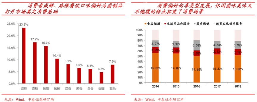 “口味”一直是驅(qū)動(dòng)休閑食品行業(yè)迅猛發(fā)展乃至全國(guó)化的重要引擎,按照不同地域設(shè)計(jì)不同口味的休閑食品,按照不同食品形態(tài)傳遞迥異的“味覺(jué)體驗(yàn)”,口味健康,食在我心。根據(jù)wind、中泰證券研究所等綜合資訊表明,鹵制品消費(fèi)者的消費(fèi)偏好轉(zhuǎn)向享受型,在2017年餐飲口味偏好調(diào)查中,辣味合計(jì)占到27.6%,“辣上癮”奠定了鹵制品行業(yè)長(zhǎng)青的基礎(chǔ),同時(shí)休閑鹵味美味又不飽腹的特點(diǎn)拓寬了消費(fèi)場(chǎng)景,從餐桌佐菜到社交零食,消費(fèi)頻次再度提升。