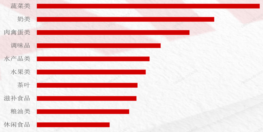 同時,平臺中的農(nóng)產(chǎn)品品類銷售額增速TOP10分別為蔬菜、奶類、肉禽蛋、調(diào)味品、水產(chǎn)品、水果、茶葉、滋補(bǔ)食品、糧油、休閑食品,基礎(chǔ)性農(nóng)產(chǎn)品消費仍然占據(jù)主流,以茶葉、滋補(bǔ)食品等代表的可選農(nóng)產(chǎn)品消費(品質(zhì)類農(nóng)產(chǎn)品消費)仍有較大的增長空間。