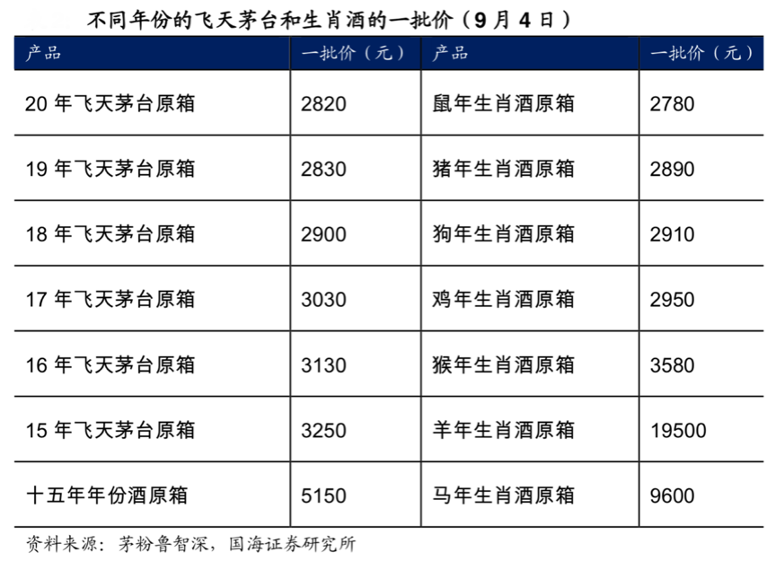 經(jīng)典案例:根據(jù)茅粉魯智深、國海證券研究所等綜合資訊表明,對于茅臺酒來說, 隨著年份的增長,茅臺酒價格也在相應(yīng)提高,而對于生肖紀念酒等非標酒,很多只在特定年份生產(chǎn),稀缺性和紀念意義較強,也具有更強的時間溢價效應(yīng)。