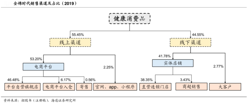 經(jīng)典案例:根據(jù)招股書、海通證券研究所等綜合資訊表明,全棉時(shí)代已完成主要包括天貓、京東在內(nèi)的第三方電商平臺(tái)布局,并重點(diǎn)打造全棉時(shí)代官網(wǎng)、APP 和小程序等自營線上渠道,深度覆蓋線上消費(fèi)者。同時(shí)線下已開設(shè) 250 家自營門店,核心產(chǎn)品進(jìn)駐華潤萬家、永輝超市等主流商超。“產(chǎn)業(yè)品牌的全場(chǎng)景體驗(yàn)”日臻豐富。